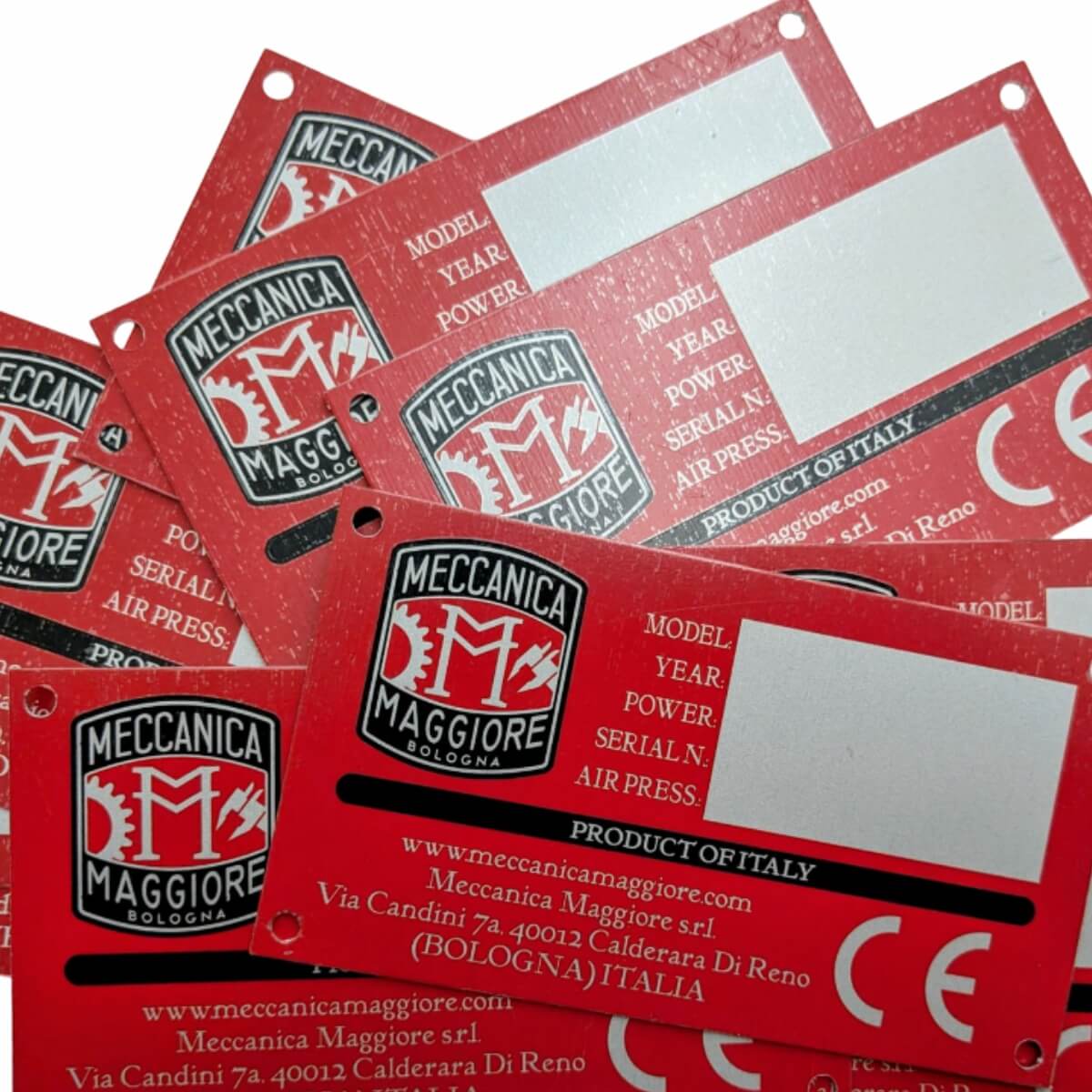 Targhette CE in Alluminio Preverniciato Sp 0,80mm con Stampa Serigrafica 2 colori.